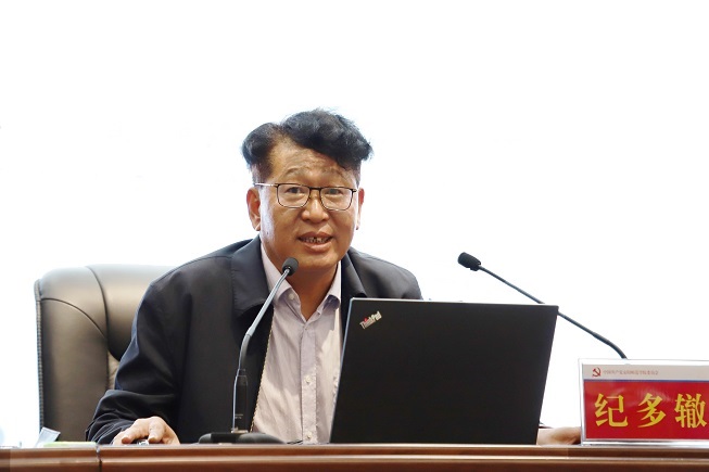 纪多辙以《学史的作用——以史为鉴 资政育人》为题,围绕“开展党史学习教育的要求”“开展党史学习教育的目的”等方面,结合自己的学习体会,用生动的故事和鲜活的案例,深入浅出地阐述了学史明理、学史增信、学史崇德、学史力行的深刻内涵。