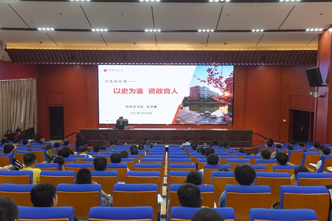5月18日下午,校党委书记纪多辙在勤业楼阶梯教室为师生上党史专题思政课。党委办公室党支部、党委宣传部党支部、甲骨文信息处理教育部重点实验室党支部,计算机与信息工程学院教师党员、学生代表到场聆听。