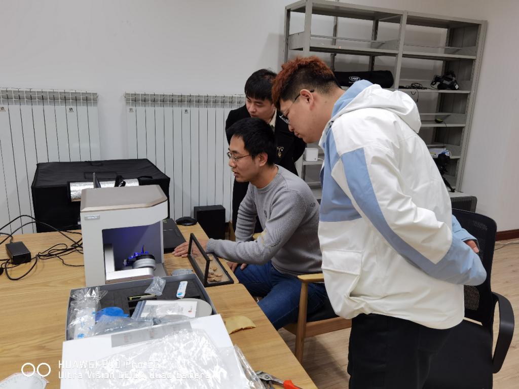 2021年3月23日,河南众之城信息科技集团一行来实验室访问交流。实验室郭安老师陪同接待。郭安老师就甲骨片三维建模的现状、需求及遇到的问题做了简要汇报,在实验室展示了若干已建成的甲骨三维数字模型。