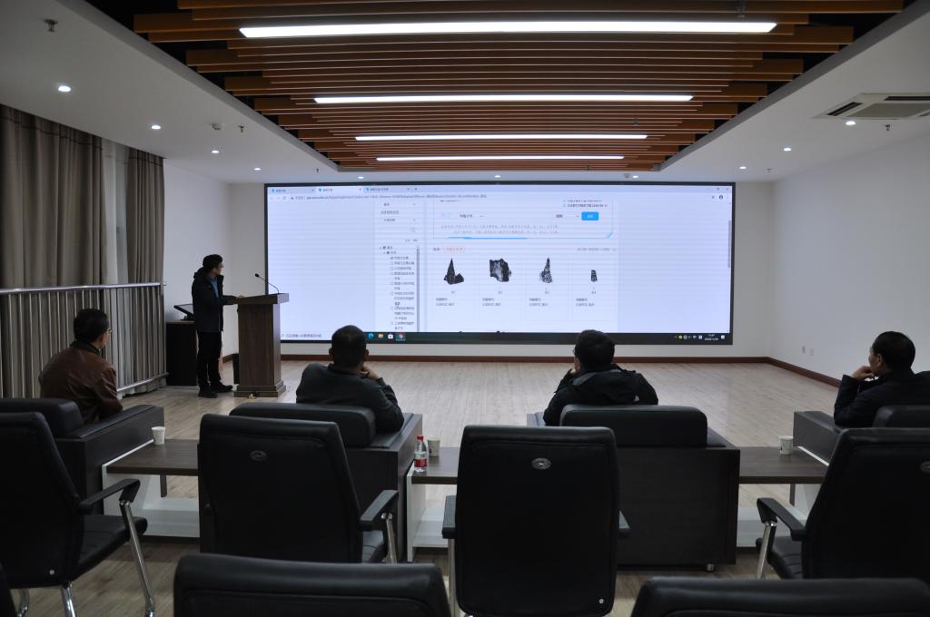 石磊一行参观了实验室东厅图书资料室及办公区域,在成果展示厅,他们听取了高峰副主任关于“殷契文渊”大数据平台的介绍,对实验室的相关研究成果表示充分的肯定。