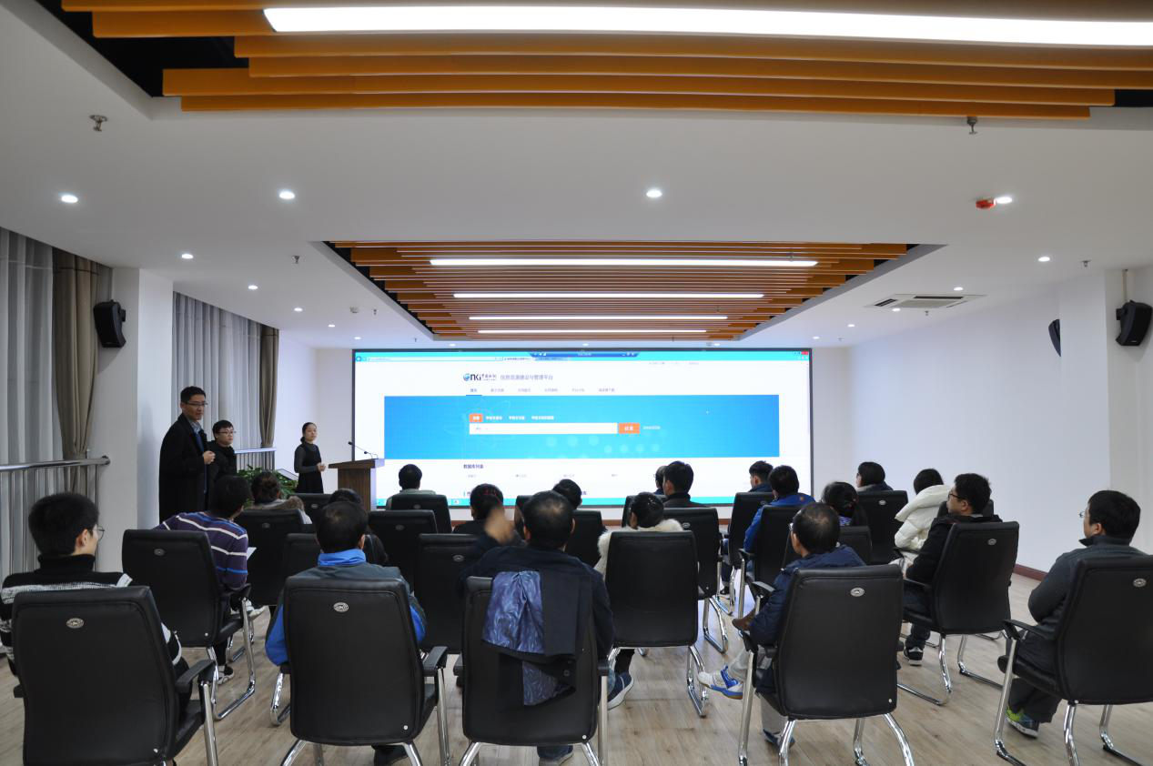 12月4日晚,实验室在成果展示厅组织了“甲骨文文献资源建设与管理平台”培训活动。活动由实验室主任刘永革主持,中国知网河南分公司经理王涛、培训师彭艳周、贾晓沛一行三人和部分实验室骨干成员及学生参加,培训师彭艳周担任主要讲解员。