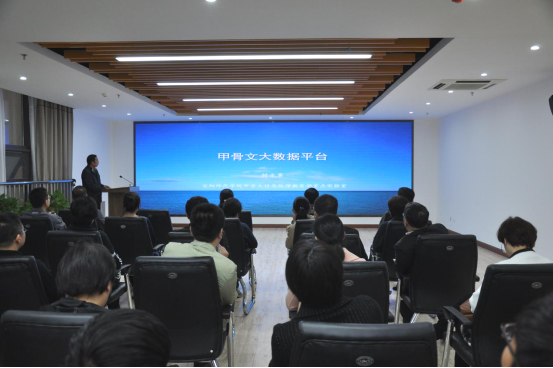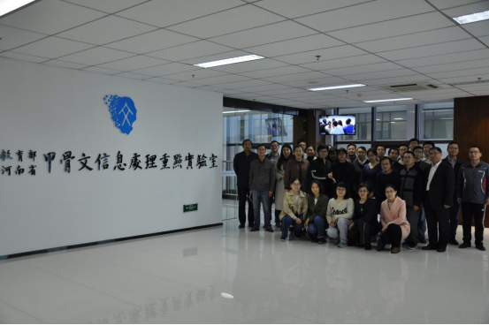 实验室高峰老师带领计算机学院全体教师参观长廊展板,为老师们介绍实验室的建设情况及发展方向。老师们先后观看了实验室东厅的工作位、休闲区域和图书资料室,他们纷纷表示实验室具备优越的办公环境并渴望加入实验室工作。参观结束,刘永革在成果展示厅向老师们介绍实验室下一步的发展规划以及实验室的“招才引智”计划。刘永革谈到,实验室在建的”殷契文渊“大数据平台自发布后受到广泛关注,和平台相关的后期建设工作还需要大量的人才,因此他希望计算机学院的老师们能够积极加入实验室,将自己所学的专业与甲骨文大数据研究结合起来。这不仅有利于实验室的发展,也有利于老师们个人的发展。老师们听后深受鼓舞。