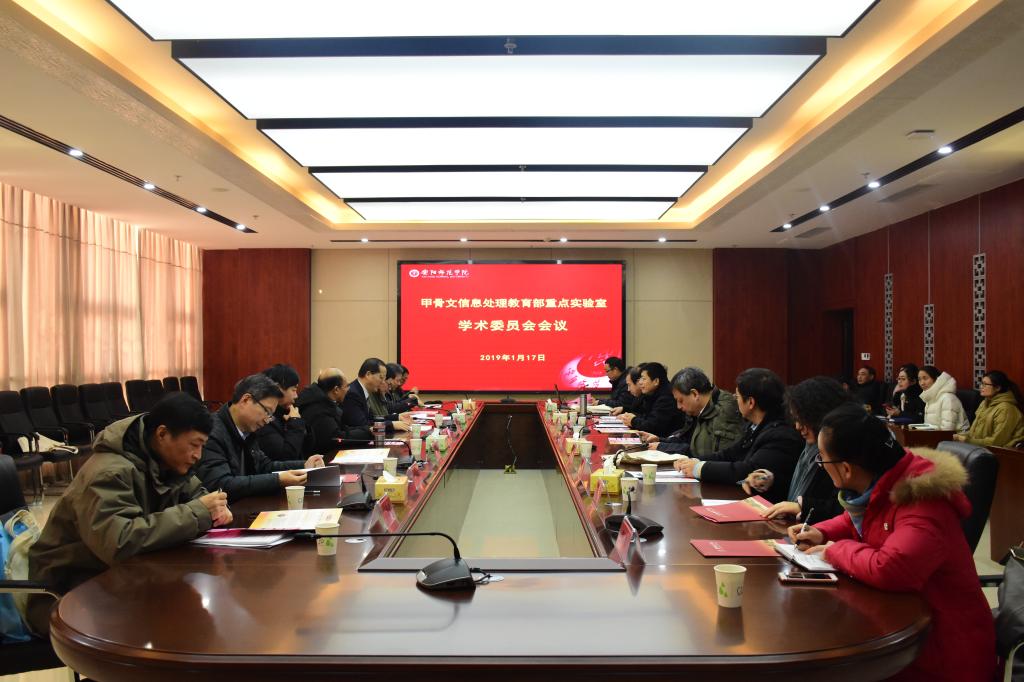 2019年1月17日上午,甲骨文信息处理教育部重点实验室第一届学术委员会暨第一次委员会会议在我校勤业楼A106会议室召开。我校校长黑建敏、副校长孙金伟出席会议。学术委员会主任委员中国工程院院士、清华大学教授戴琼海,学术委员会副主任委员中国社会科学院学部委员、研究员宋镇豪,中国科学院自动化研究所副所长刘成林研究员,学术委员会委员西北民族大学教授于洪志、厦门大学人工智能研究所所长教授史晓东,北京大学历史系教授朱凤瀚,北京大学计算机科学技术研究所副所长、研究员汤帜,清华大学计算机科学与技术系教授、清华大学人工智能研究院常务副院长孙茂松,吉林大学副校长、教授、中国古文字研究会会长吴振武,中国社会科学院考古研究所安阳工作站副站长、研究员何毓灵,华南理工大学电子与信息学院教授金连文,中国社科院历史研究所研究员宫长为,清华大学出土文献研究与保护中心常务副主任、讲席教授、中国文字学会会长黄德宽,天津大学计算机科学与技术学院教授韩亚洪,安阳师范学院刘永革教授、于江德教授、刘国英教授参加会议。科研处处长陈静教授及部分学术骨干列席会议。