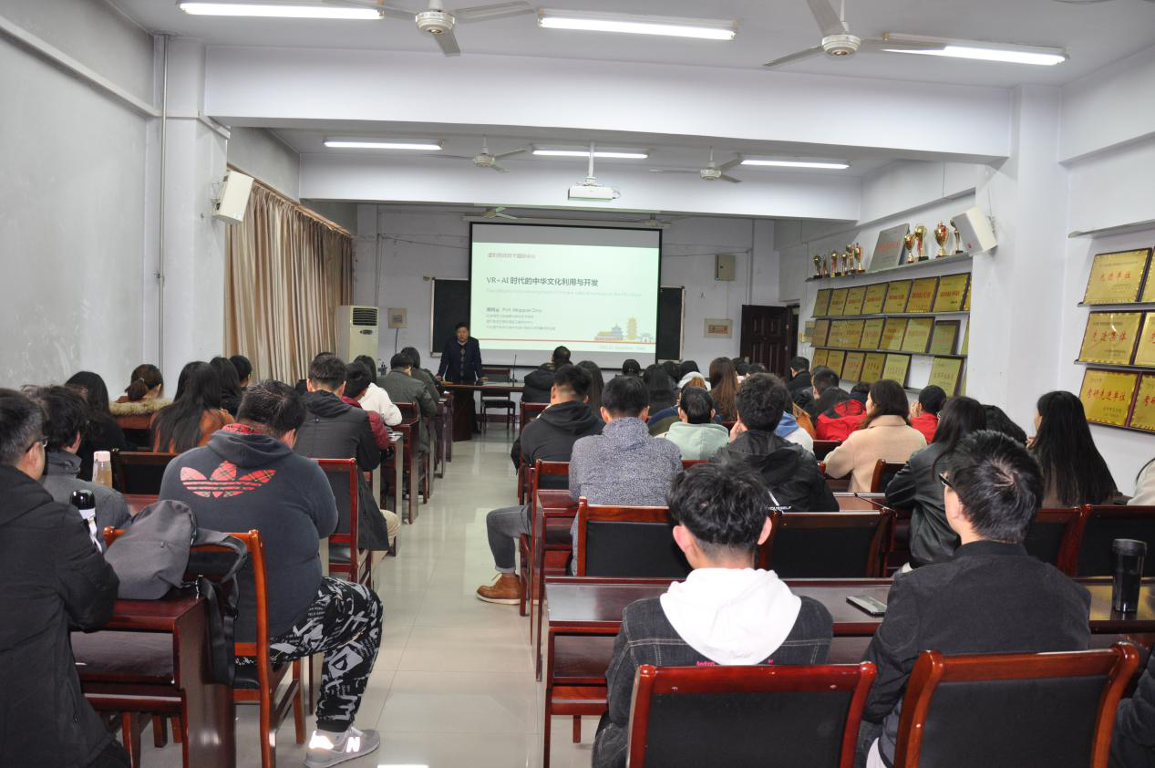 报告中,周明全从虚拟现实的发展开始谈起,详细讲述了虚拟现实技术的定义、应用领域、未来的发展前景,围绕虚拟现实技术在文物碎片拼接、分类修复等方面的相关知识,与现场师生进行了交流与分享。